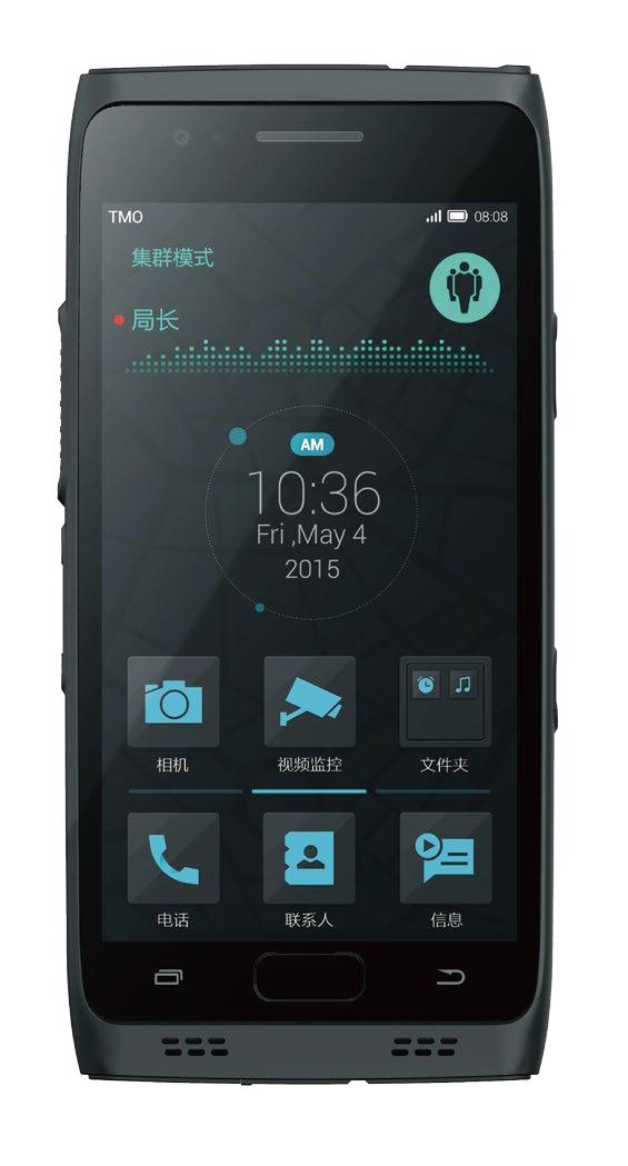 配置麒麟8核CPU,采用鼎桥公司自主研发的LTE集群模块,安 全高效。  :   2×1W大功率外放扬声器,先进的双MIC降噪和回声消除技术, 即使在机场地铁嘈杂环境下也能清晰通话。