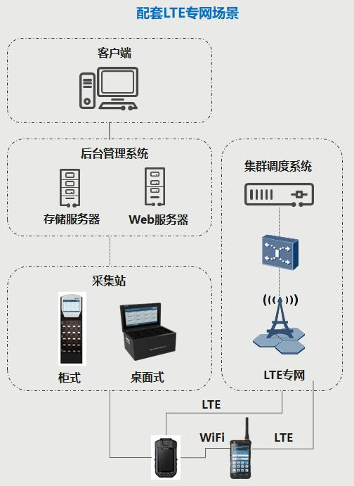 提供完整解决方案  :   包含执法记录仪、采集站(桌面式和柜式)、后台管理系统和可独立配置销售的UDC/MDC。 整体解决方案满足公安部 GAT 947.2-2015 部标要求。