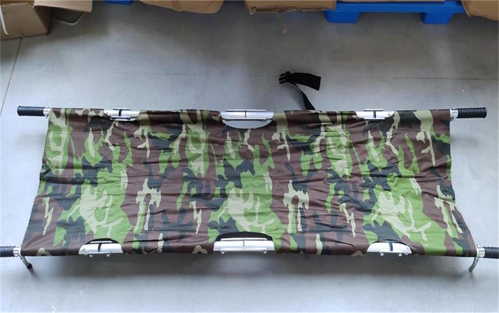 结构特点  :   不用时可将担架折叠起来,减少占用空间;需要时将担架展开即可。含有专用的担架包。优质帆布面料,主要是迷彩颜色,铝制管壁3个厚,携带方便,四折叠.管壁3个厚结实耐用。