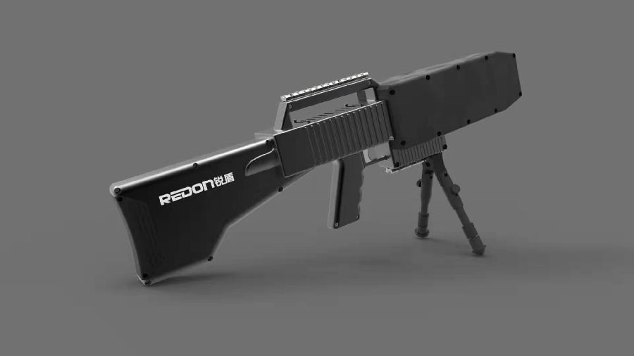 外观  :   便携式无人机拦截系统由主机和充电器组成,主机为便携式结构,其上设计有适合安装瞄准镜、照明灯、红外等外设的导轨。设备主机通过产生不同频率的电子干扰信号,对无人机无线电控制链路/GPS链路进行干扰,采用DC12V供电